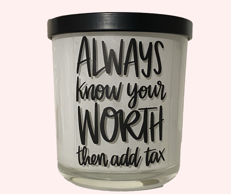 Always know your worth then add tax - White & Black Candle