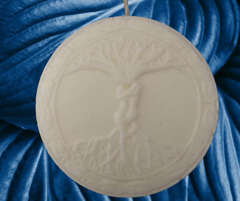 This beautiful round Family Tree of Life depicts the creation on a family through entwined Lovers.